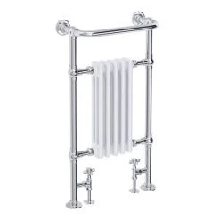 This classic traditional design, is to be plumbed into the main central heating system and used as a radiator/towel rail. It also can be wired into the electric mains for summer towel warming.