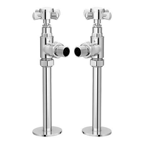 (1) Pair of Traditional Chrome Plated Angled Radiator Valves with Pipes & Concealing Plates