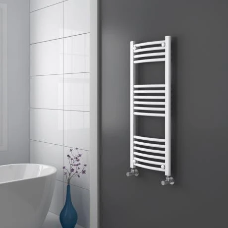 A quality 22mm tube diameter standard towel rail with a curved profile, finished in a classic brilliant ice white this luxury stylish towel rail brings a real quality finish to your bathroom. Comes with a 5 year guarantee against manufacturing defects.