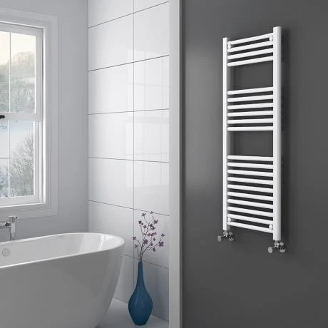 A quality modern 22mm tube diameter standard towel rail with a straight profile, finished in a classic brilliant ice white this luxury stylish towel rail brings a real quality finish to your bathroom. Comes with a 5 year guarantee against manufacturing defects.
