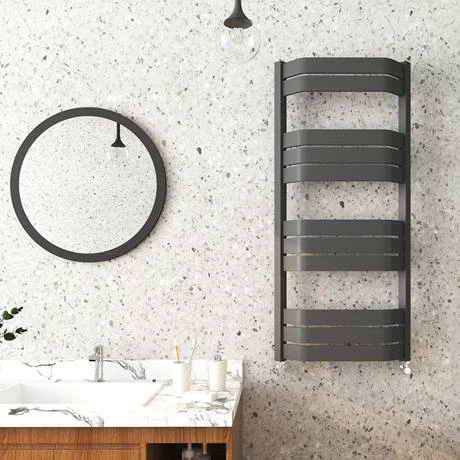 Milan Bow-Fronted Anthracite 1200 x 550 Designer Flat Panel Heated Towel Rail