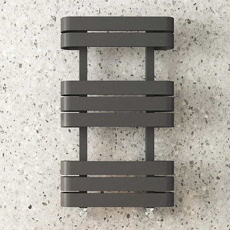 The Milan curved designer vertical heated towel rail features an innovative modern design, manufactured from durable steel with a quality anthracite finish, this stylish curved flat panel towel rail provides superb heat output which will gently warm towels and your bathroom or cloakroom.