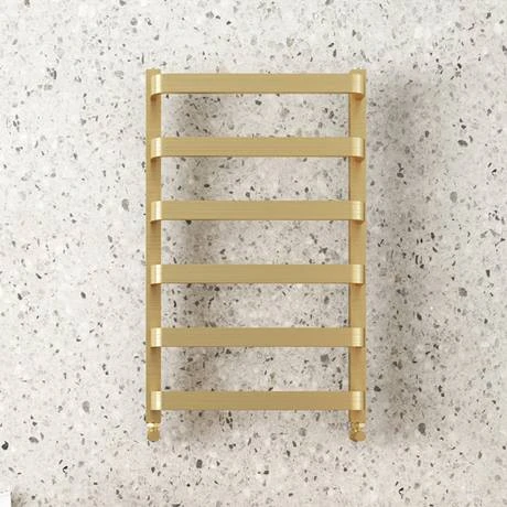 A stunning modern vertical designer towel in a modern brushed brass finish, the Venice towel rail features 6 innovative D-shaped rails providing a stylish way to keep your towels warm, as well as neat and organised. The Venice range of sleek towel rails are manufactured using the finest materials and offers outstanding heat output. Ideal for any contemporary setting or interior.